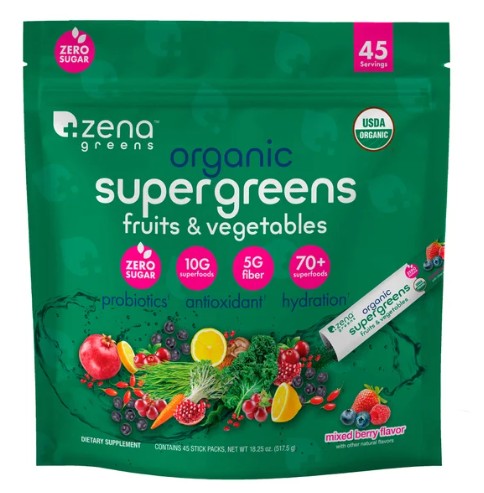 5. Zena USDA Organic Supergreens Fruits & Vegetables Powder $32.99/45 Ct