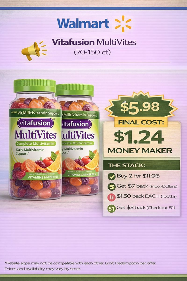 The Stack: Buy 2 for $11.96. Get $7 back (InboxDollars), $1.50 back each (Ibotta), and $3 back (Checkout 51).
