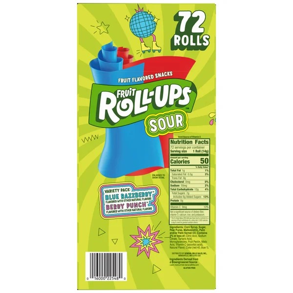 7. Fruit Roll Ups Sour Variety Pack $17.99/72 Count