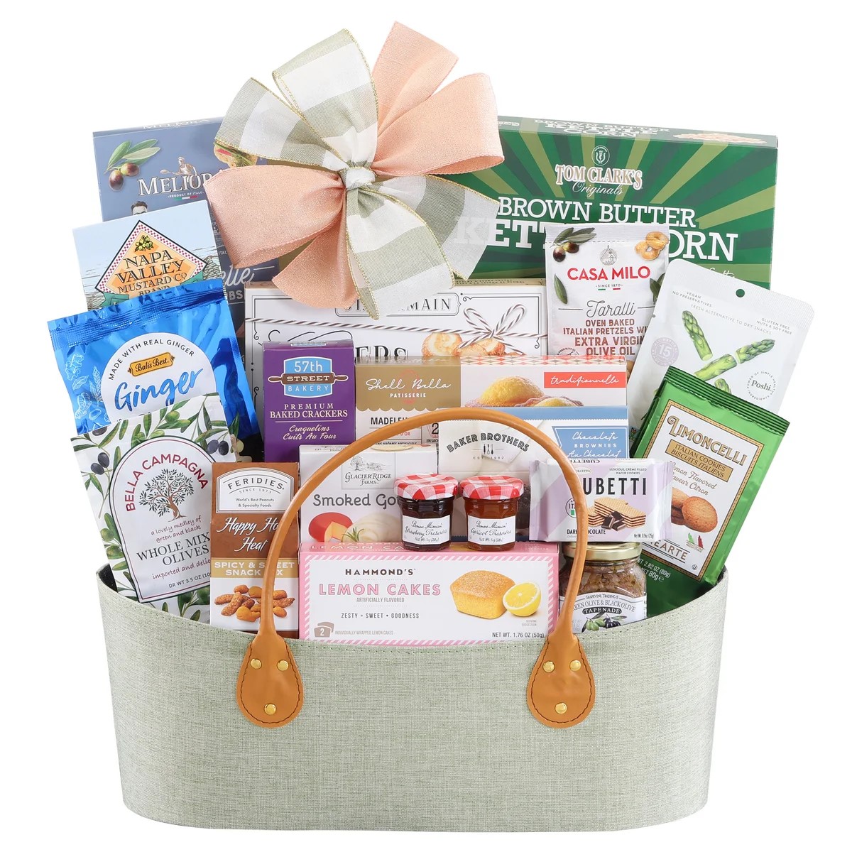 Surprise mom with this beautifully curated gourmet gift basket filled with chocolates, snacks, and other treats. Perfect for Mother’s Day or any special occasion.