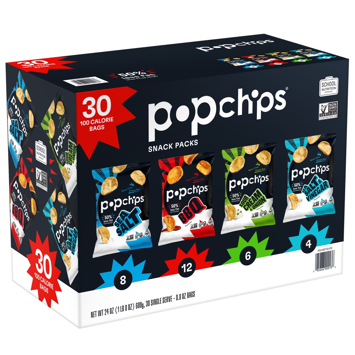 Popchips Potato Chips are a healthier alternative to traditional chips, offering a crispy snack with less fat. This snack pack makes it perfect for on-the-go.