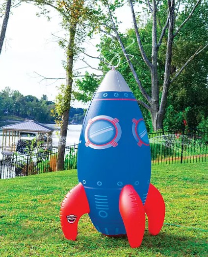 A massive, colorful rocket-shaped sprinkler that shoots water over 10 feet high—perfect for cooling off kids (and kids-at-heart).