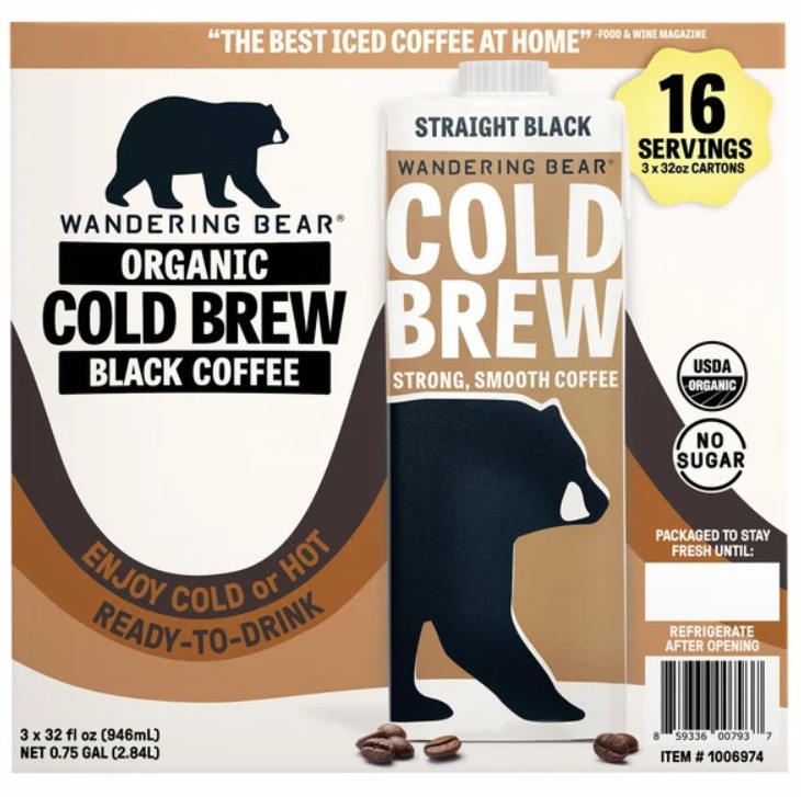 8. Wandering Bear Cold Brew Coffee $24.99/3 Ct