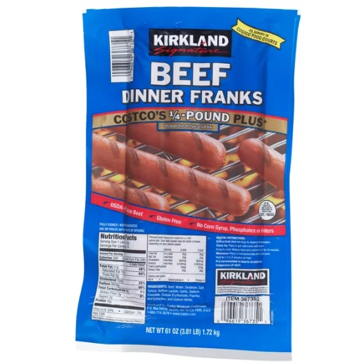 14. Kirkland Signature Beef Dinner Franks $20.99/61 oz