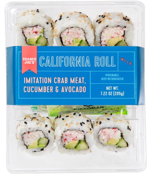 Description: Pre-packaged sushi rolls found in the refrigerated grab-and-go section.