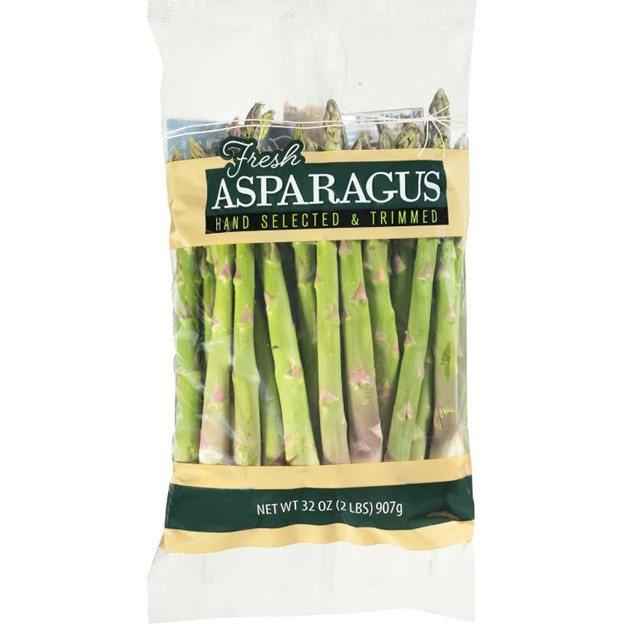 Description: A 2-pound bag of fresh, trimmed asparagus spears.