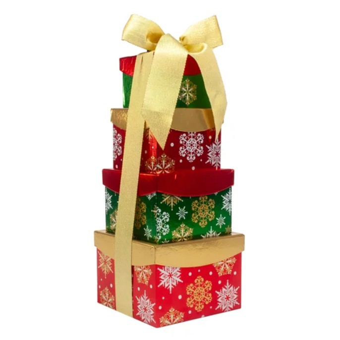 Happy Holidays Snowflake Tower of Sweets 4-Tier Tower – $29.99