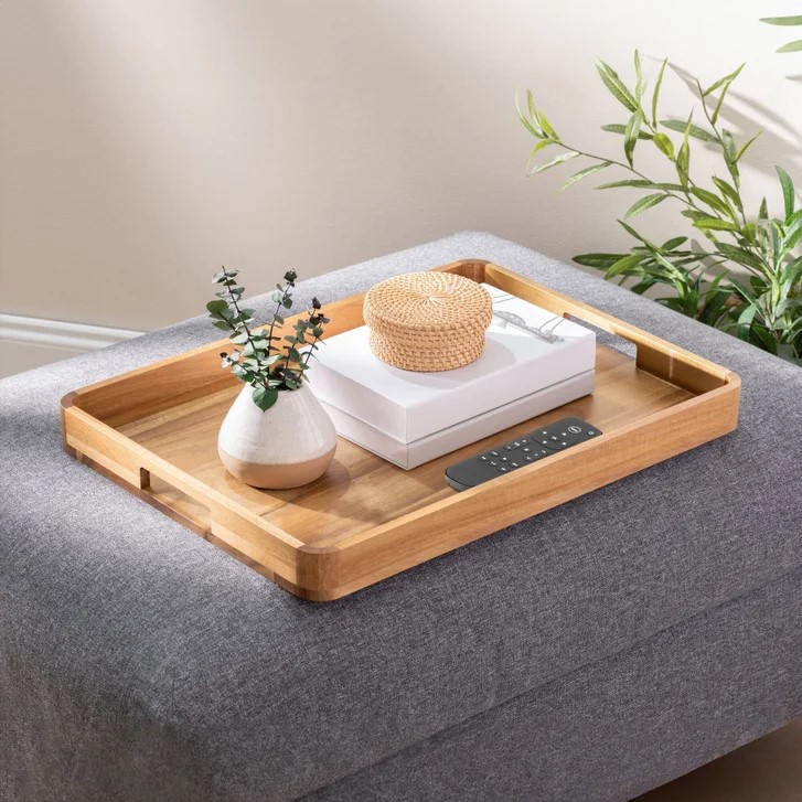Acacia Wood Organizer Trays / Stoneware Baskets — $24.97