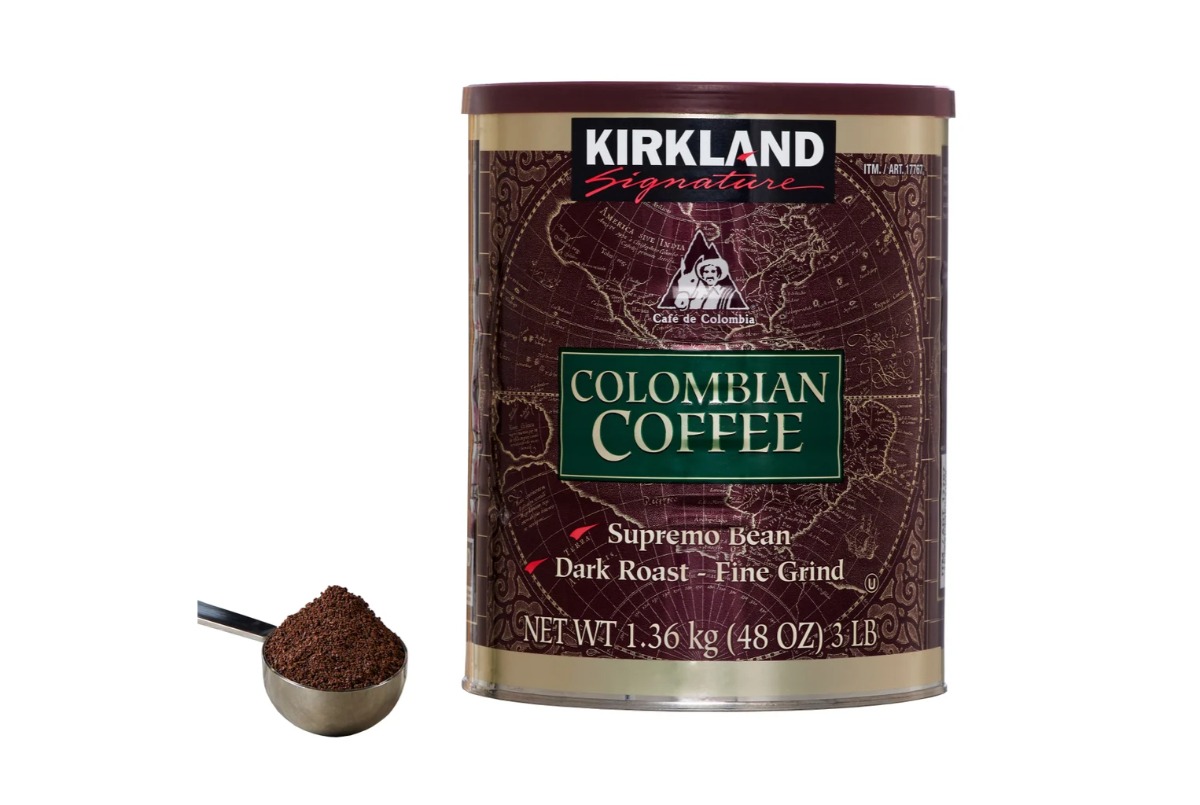 Description: Massive bags of pre-ground Kirkland Signature or brand-name coffee.