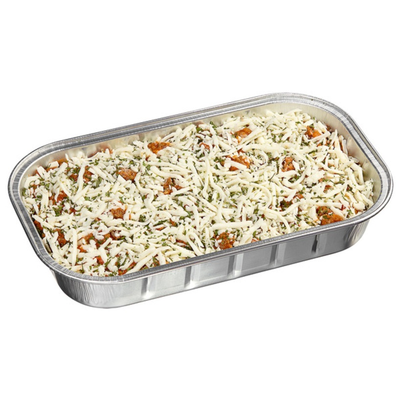 - Layered ravioli with meat sauce and cheese, oven-ready.