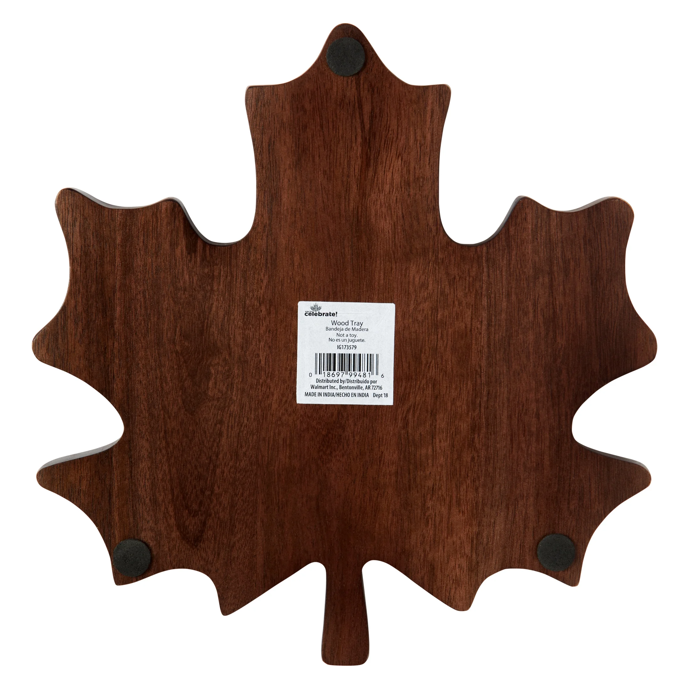 Way to Celebrate Mango Wood Leaf Decorative Tray (~$20)
