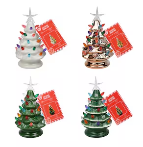 - Nostalgic eight-inch ceramic tree aglow with multicolored LEDs evokes vintage warmth, ideal as a nightlight or shelf star. Gently illuminating smaller spaces, it gifts cozy nostalgia or tabletop magic, blending retro appeal with modern ease for heartfelt holiday vibes.