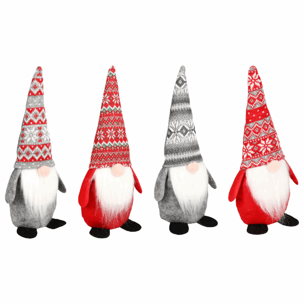 - Whimsical felt gnomes in red, gray, and green with fluffy beards and pointy hats perch playfully on shelves or tables. Handcrafted details add quirky personality to mantels, delighting as mischievous accents that infuse Scandinavian charm into your seasonal storytelling.