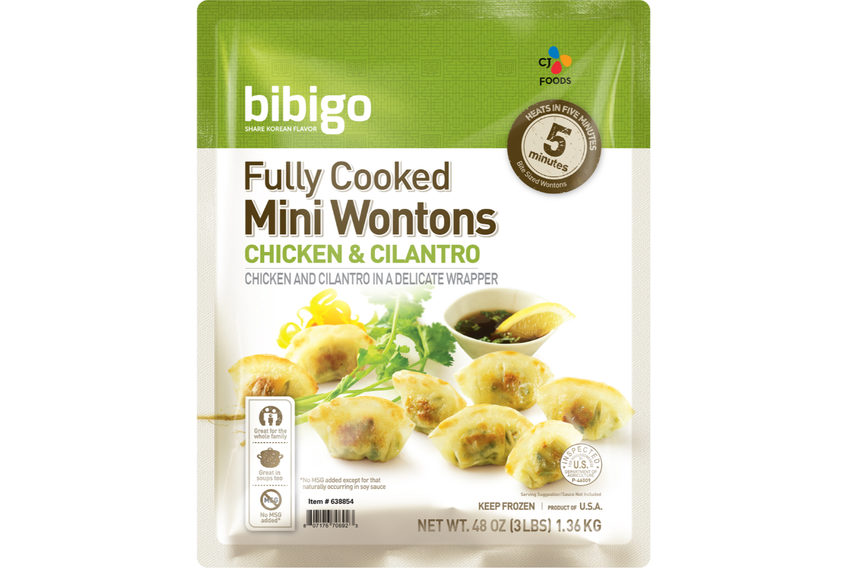 10. Bibigo Chicken & Cilantro Mini Wontons — ~$10.00–$12.00 (3 lb bag)