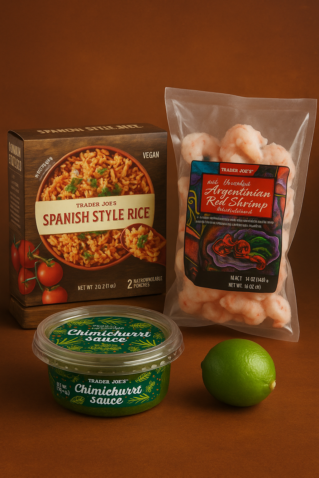- Ingredients & Prices: Frozen Shrimp ($11.99/1 Lb), Spanish Style Rice ($3.99/20 Oz), Chimichurri Sauce ($3.99/8 Oz).