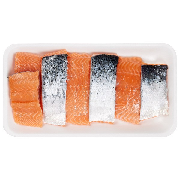Bake at 375°F for 12–15 minutes or grill. Expect milder flavor and softer texture compared to wild sockeye.