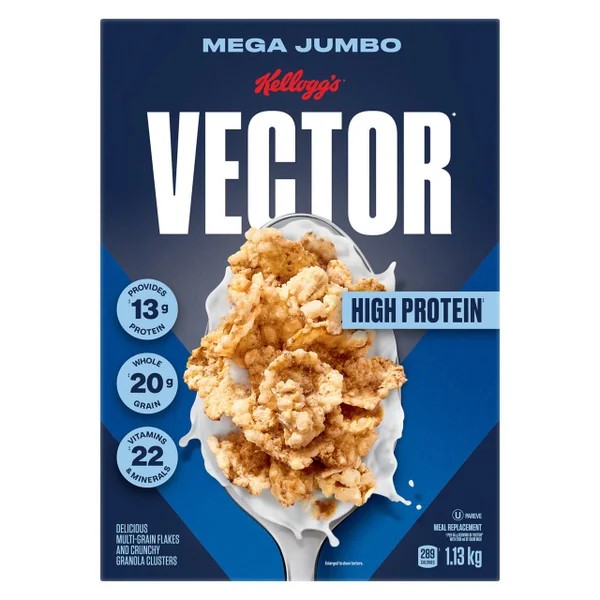 A high-protein breakfast cereal made for active lifestyles, Vector packs whole grains, vitamins, and fiber into a lightly sweetened crunchy flake and cluster blend.