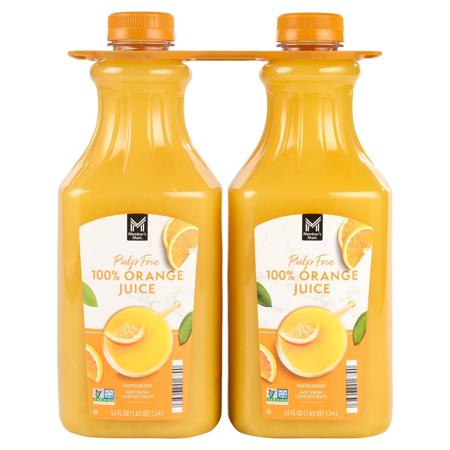 Member’s Mark 100% Orange Juice, Pulp-Free (2 × 52 fl oz) – $7.68