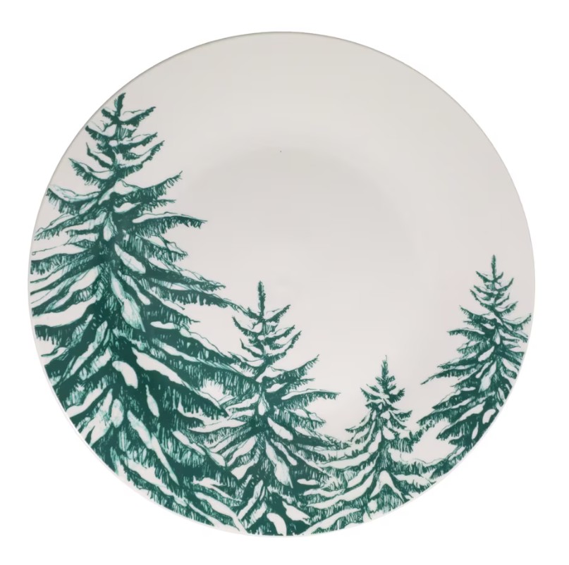 Elevate your holiday table with these 10.5-inch durable plates featuring a crisp winter green motif and subtle evergreen accents.