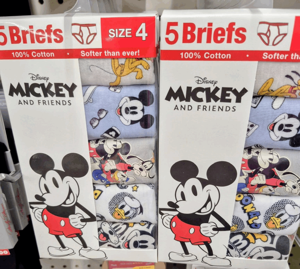 - Description: A 5-pack of cotton kids briefs featuring Mickey & Friends prints. If you’ve ever bought kids underwear elsewhere, you already know this is an insane deal.