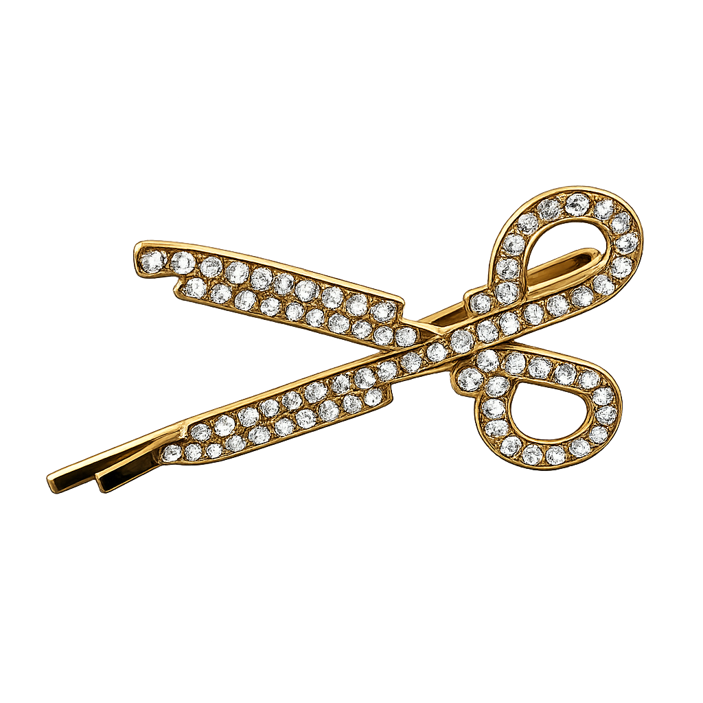 - Description: A trendy gold-tone hair clip shaped like scissors, covered in rhinestones. It’s giving “salon chic” and looks way more expensive than it is.