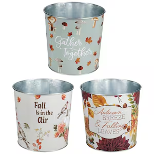 - Rustic metal pails with harvest vibes, ideal as bases for fall centerpieces topped with faux leaves or pinecones.