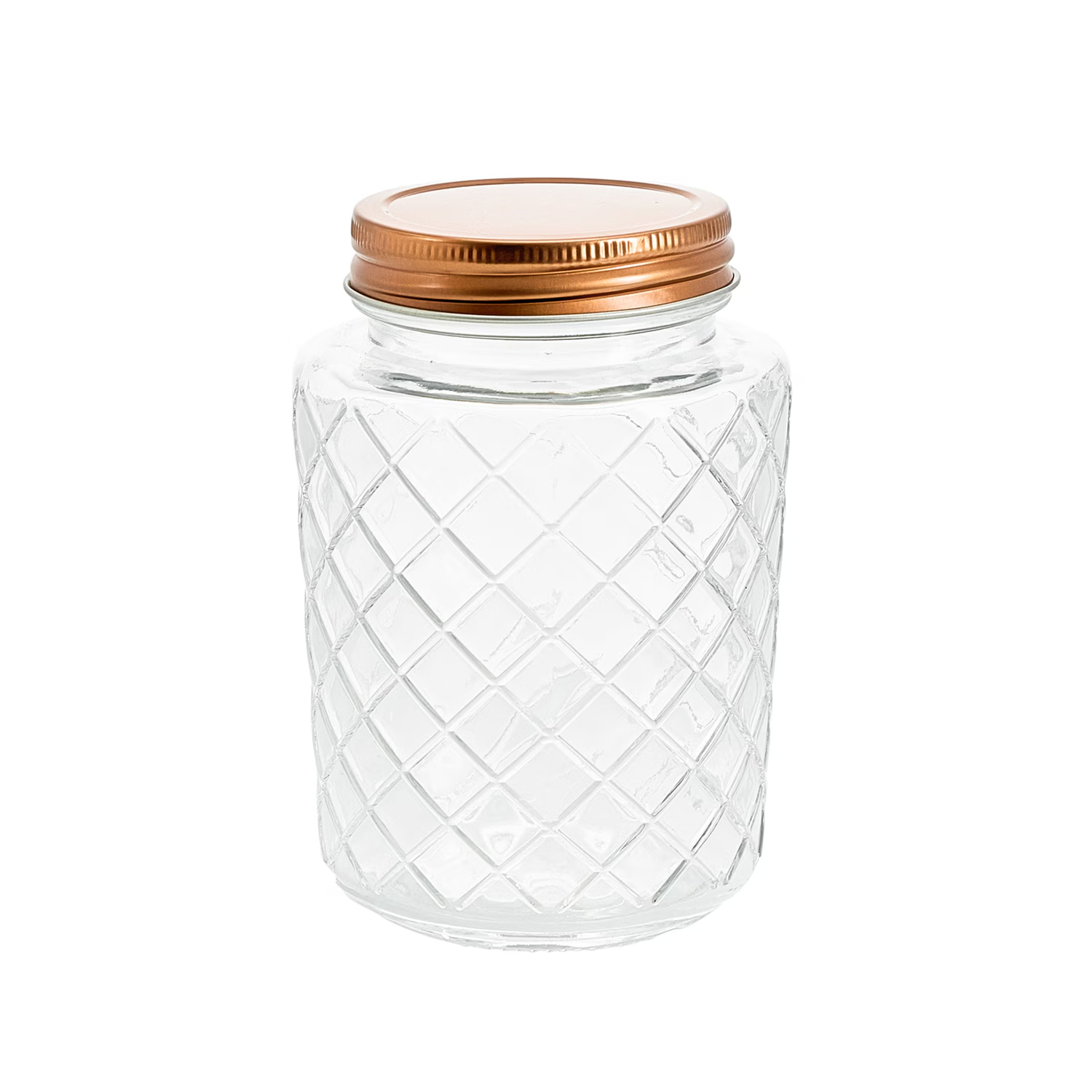 Lattice Pattern Glass Jar With Rose Gold Metal Lid – $1.50