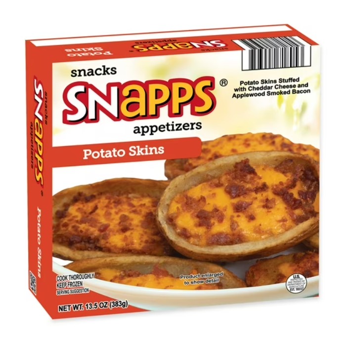 Snapps Potato Skins Stuffed with Cheddar Cheese and Applewood Bacon – $4.48