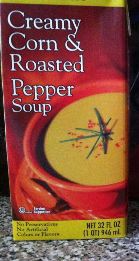 Creamy Corn & Roasted Pepper Soup – $3.49/32 Oz
