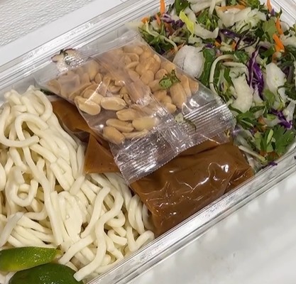 Udon noodles, slaw mix, miso dressing, peanuts, lime.