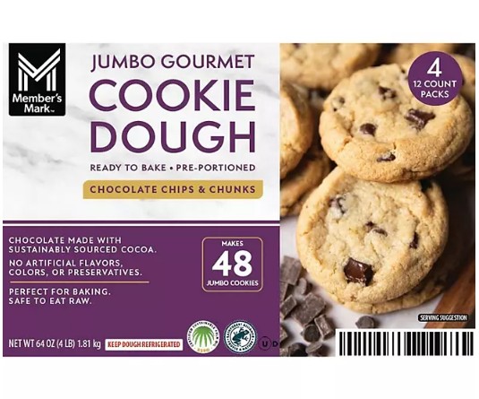 7. Member’s Mark Jumbo Gourmet Chocolate Chip and Chunk Cookie Dough $10.98/4 x 16 oz