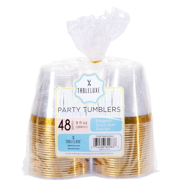 2. Tableluxe Premium Gold-Rimmed Clear Plastic Tumblers — $6.98