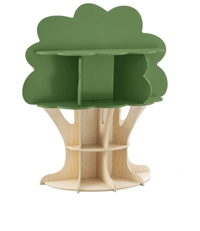 A charming tree-shaped bookshelf—brightens playrooms or patios while storing summer reads and toys.