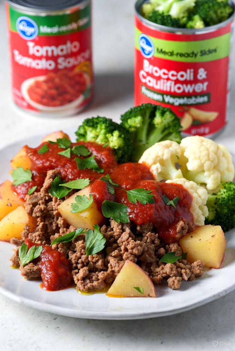 Serve mixture over prepared broccoli and cauliflower. Refrigerate leftovers.