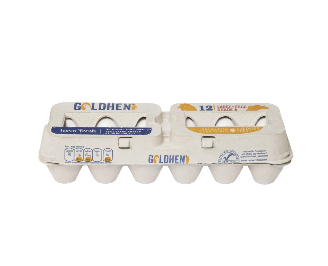 Goldhen Large Eggs are a reliable choice for everyday cooking, whether you are making scrambled eggs, baking cakes, or preparing a hearty breakfast. These eggs are fresh and farm-fresh, with firm, golden yolks and a rich taste. They are perfect for those who appreciate the simplicity of a classic egg, packed with protein and nutrients. Goldhen eggs are produced by hens that are raised with care, ensuring a high standard of quality. The eggs have a natural, creamy texture that makes them easy to cook with. Their affordable price and consistent quality make them a must-have in your fridge.