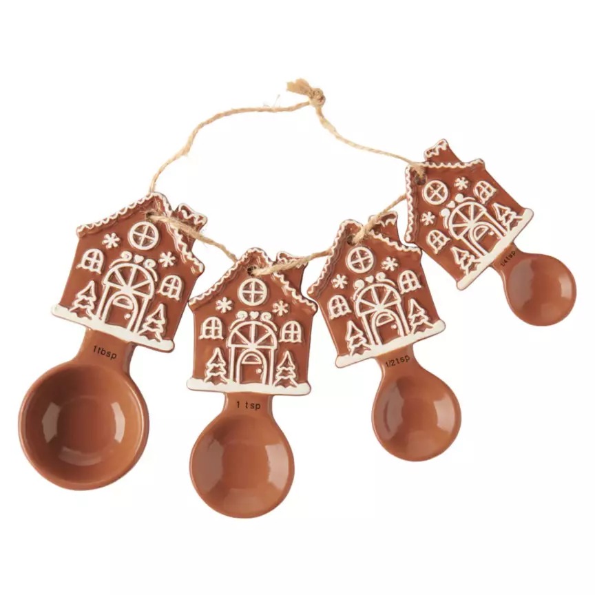 Holiday baking feels extra special with the Crofton Ceramic Measuring Spoons in the brown gingerbread design. The set includes four spoons ranging from a quarter teaspoon to a tablespoon, all made from glazed ceramic with adorable holiday detailing. They look great sitting on your counter or hanging near your baking station, adding both function and charm. At an affordable price, they make a thoughtful gift for anyone who loves baking. Many shoppers pick up extras to use as stocking stuffers or display pieces for their holiday kitchens.
