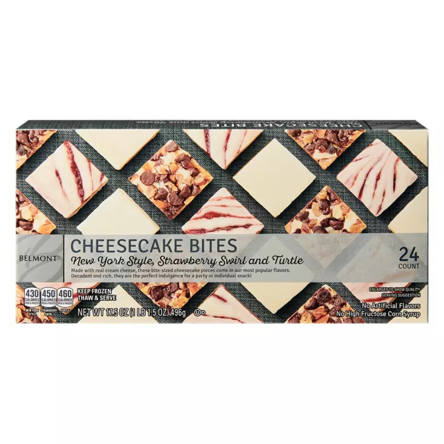 When dessert time rolls around, the Belmont Mini Cheesecake Bites are hard to resist. Each box comes with 24 bite-sized squares in three flavors: New York Style, Turtle, and Strawberry Swirl. They’re creamy, rich, and perfectly portioned for holiday parties or after-dinner treats. Fans suggest letting them sit for a few minutes before serving so the flavors can shine. Since they’re a seasonal item, they disappear quickly from freezer shelves, so it’s smart to grab a box or two early for those holiday gatherings.