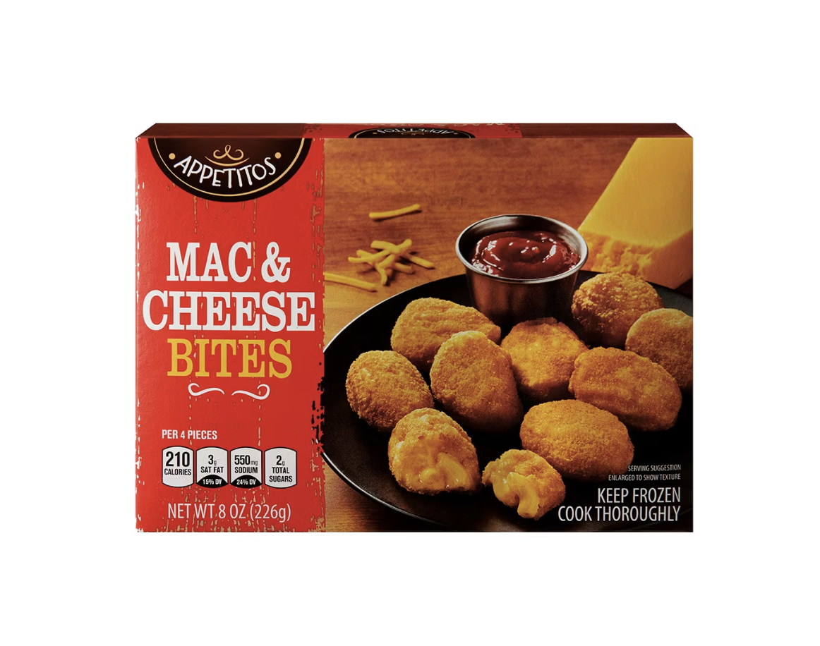 Appetitos Mac and Cheese Bites are bite sized fun. Each piece has macaroni and cheese inside a crispy shell. They are easy to pop in the oven or air fryer. When warm they are cheesy and soft on the inside. They go well with ketchup or ranch if you like a dip. These bites appeal to kids and adults alike. They are small but satisfying to grab during a game. These mac and cheese bites make your table feel more playful. They cook evenly even in large batches. That makes them helpful when feeding a crowd.