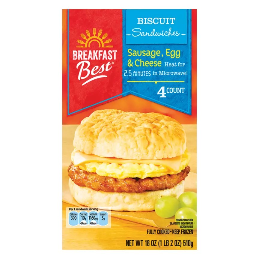 This biscuit sandwich looks promising, but the bread is where it stumbles. Instead of being fluffy and buttery, the biscuit gets dense and dry once heated. The sausage and egg are fine but not memorable, and the cheese has a habit of melting out before you even take a bite. Some people fix it by toasting the biscuit separately, which helps with the texture. Straight from the microwave, though, it is more disappointing than satisfying.