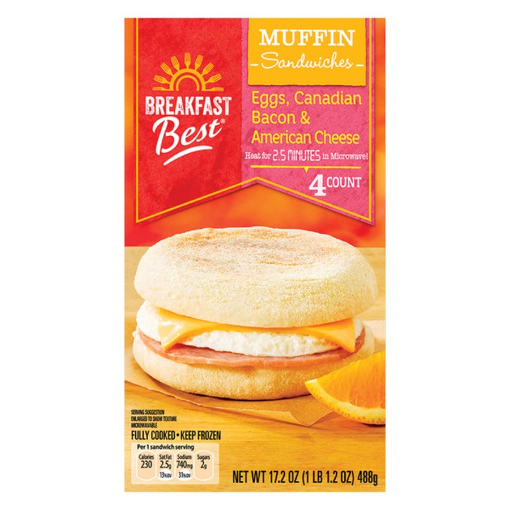 - 1 10. Breakfast Best Canadian Bacon, Egg & Cheese Muffin Sandwich
