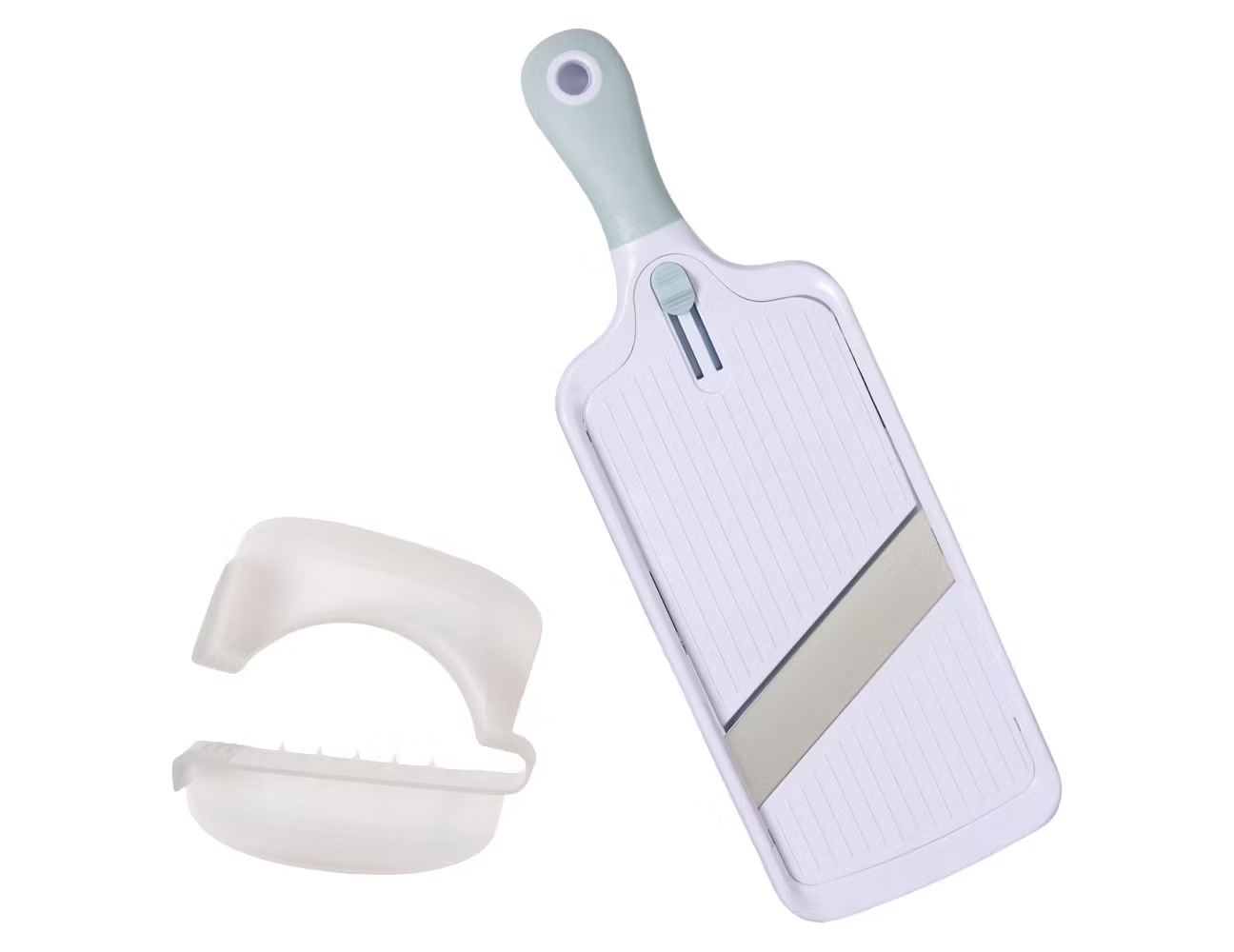 Thin, even slices are one of those things that make food look and cook better, but doing it by hand can be slow. This mandoline has a nonslip handle plus a hand guard, which is exactly what you want when the blade is doing the work. The stainless steel blade is meant for clean slicing, so cucumbers, onions, and potatoes come out more uniform. It is great for quick salad prep, homemade chips, or layering potatoes for a bake. The best tip is to go slow near the end of whatever you are slicing and let the guard do its job.