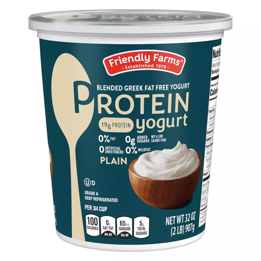 - 1 Friendly Farms Plain Fat Free Protein Greek Yogurt