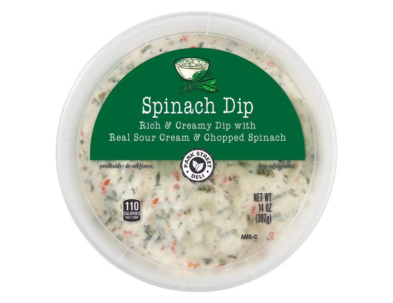 Something creamy on the snack table usually disappears first, and this is the kind of dip people keep circling back to. It is made with real sour cream and chopped spinach, so it tastes like the classic party dip without you mixing anything at home. Bring baby carrots, celery sticks, or cucumber slices if you want a fresher balance next to all the salty snacks. Crackers work great, too, especially if you want a sturdier scoop that will not snap mid-dip. If you want it to feel more potluck-ready, pour it into a small bowl and sprinkle a pinch of pepper on top. Keep it cold, and set it over a small ice pack if the party runs long.