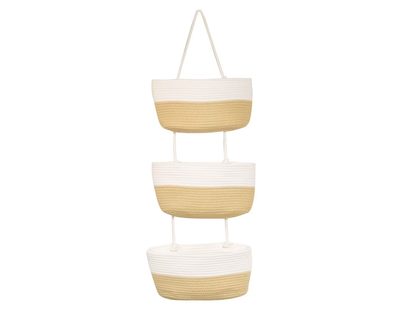 Perfect for small kitchens or tight pantry spaces, this three-tier hanging basket from Kirkton House gives you vertical storage without taking up counter space. Each tier is roomy enough for fruits, snacks, or cleaning supplies, depending on where you hang it. The open-wire design lets air circulate, which helps keep produce fresher longer. Many shoppers use it for onions, potatoes, and citrus, while others turn it into a cute bathroom organizer. Installation is simple, and once it’s up, everything stays within easy reach. It’s one of those pieces that quietly makes daily life more organized.