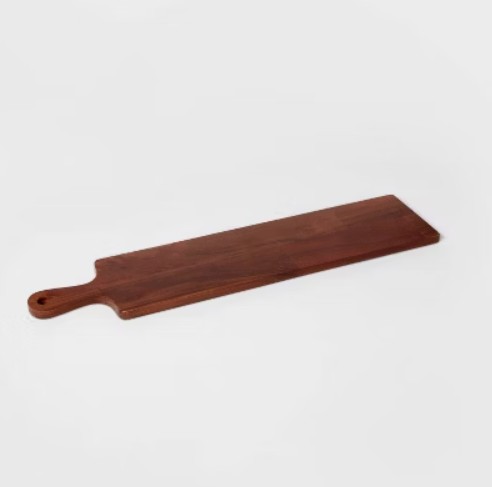 - Slicing cheeses and breads on this large board made entertaining effortless. Its wooden finish adds a natural, elegant touch to servings.