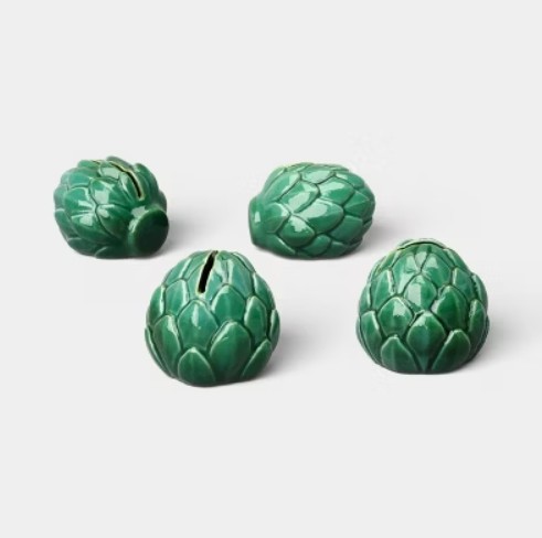 - These artichoke-shaped holders sat perfectly on my table, holding name cards while adding a deep green harvest accent. They’re cute, stable, and make place settings feel personalized and thematic.