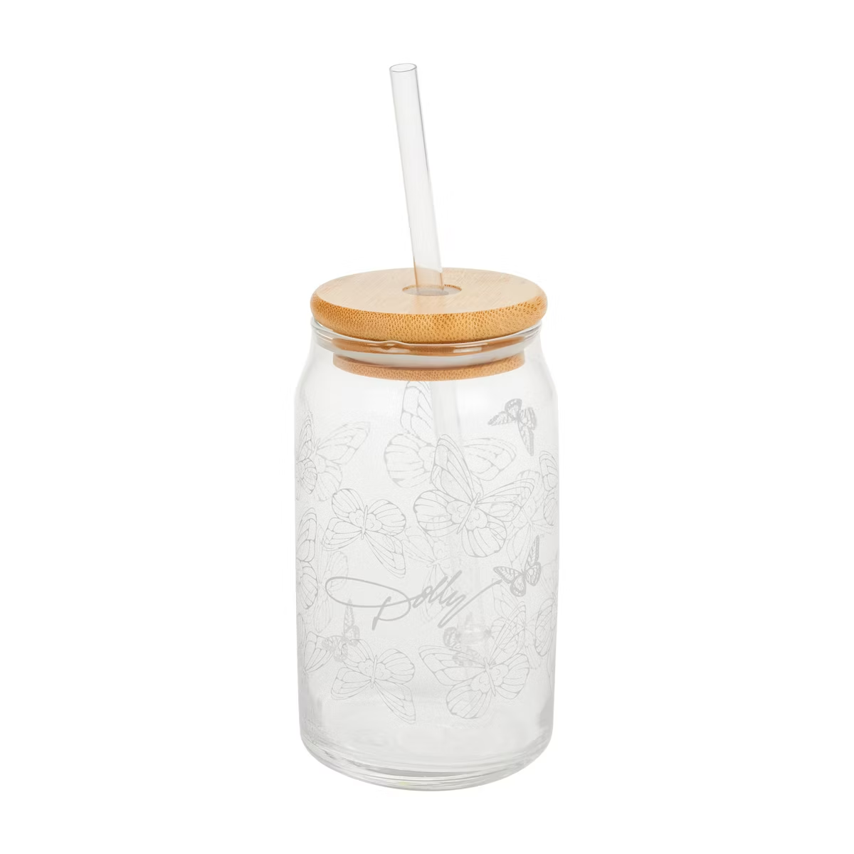 - Glass cup and straw set adorned with a butterfly pattern, ideal for at-home lattes, iced teas, or smoothies; lightweight and stylish for casual sipping, adding a whimsical Dolly-inspired flair to your drinkware collection—hand wash recommended.