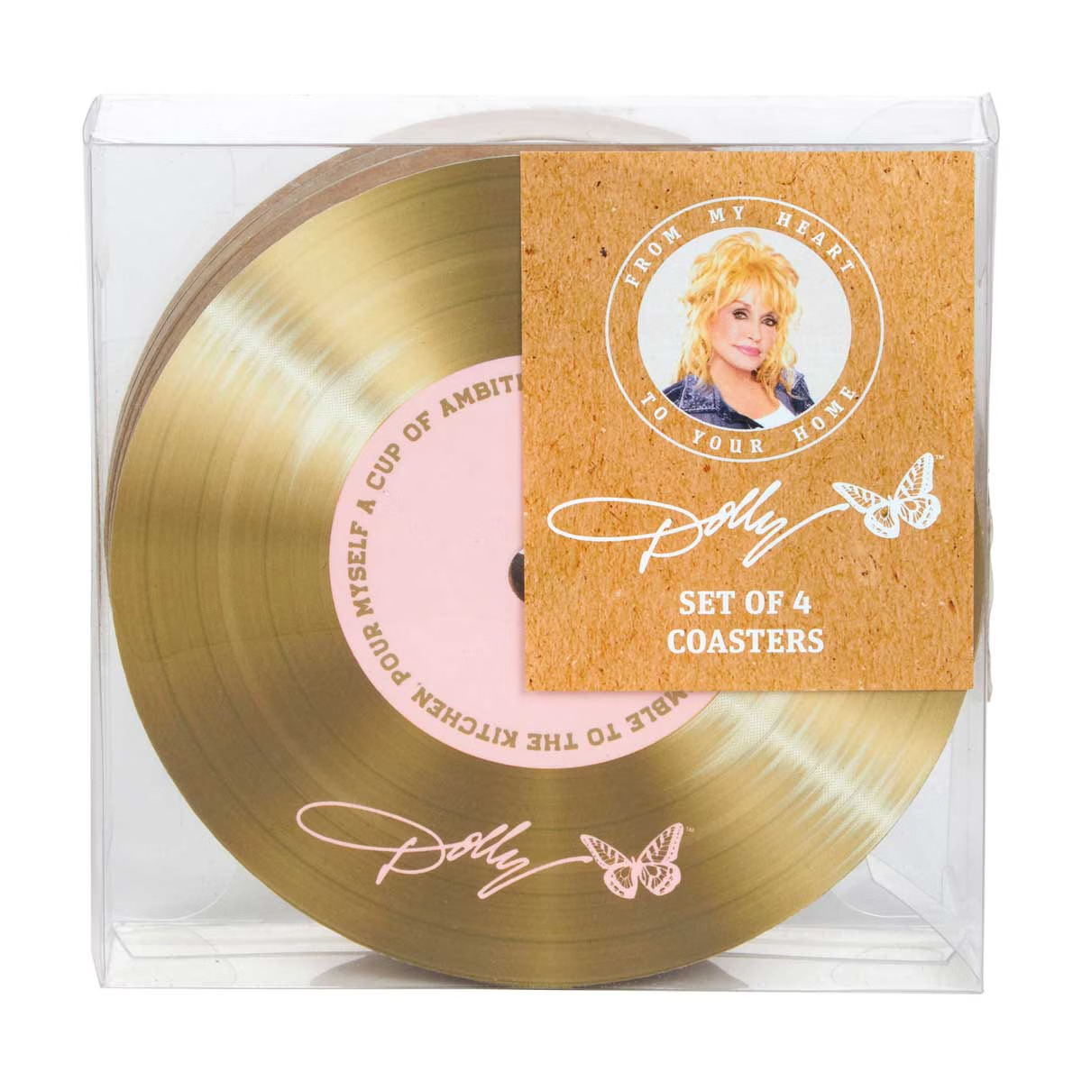 - Gorgeous golden coasters shaped like vinyl records as a nod to her musical legacy; protect surfaces from spills and scratches while bringing a fun, retro vibe to your table—stackable and easy to clean for entertaining or daily use.