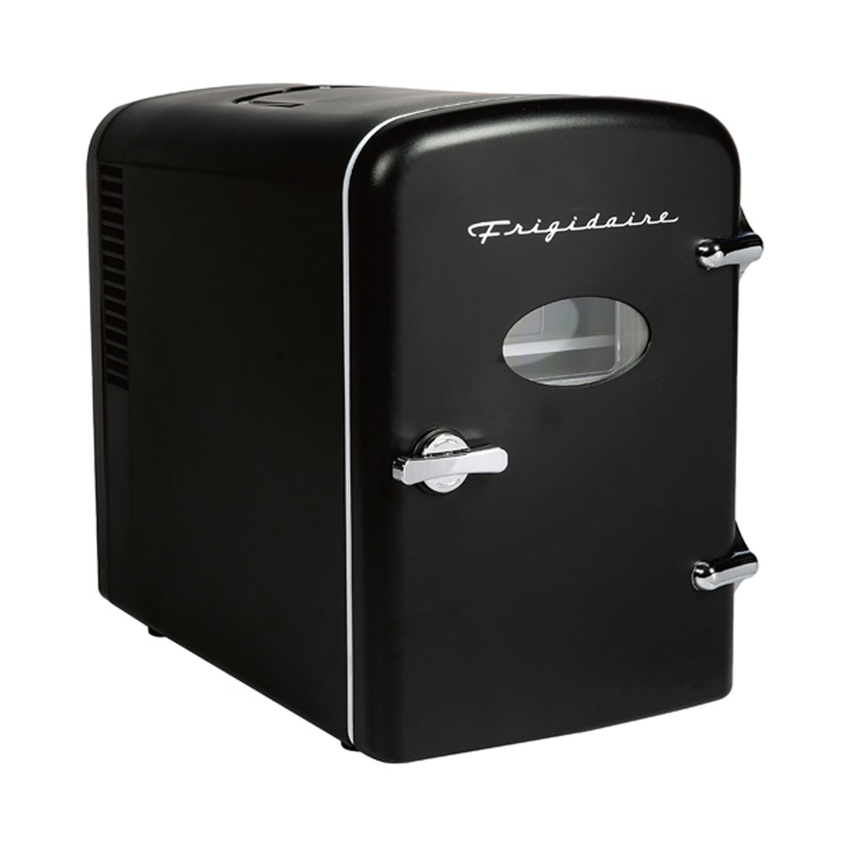 - Compact 5-liter mini fridge with a 9-can capacity and vintage aesthetic, cooling to 20-28°F below room temperature; versatile for storing drinks, snacks, or skincare products like creams and serums, with dual power options (wall outlet or car adapter) for home, office, dorms, or travel—energy-efficient and space-saving.
