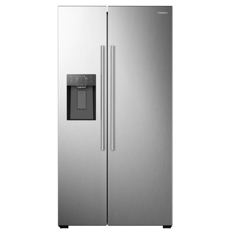 This Mora side-by-side refrigerator offers a very large 29.1 cubic foot capacity for serious storage needs. The wide shelves make room for bulk grocery hauls, party platters, and oversized containers. Door bins help organize drinks, condiments, and frequently used items. The clean exterior finish blends into modern kitchens with ease. It is ideal for larger households that need maximum cold storage.